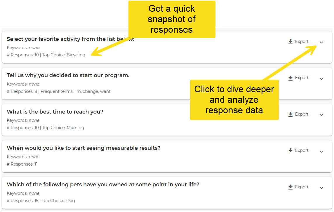 Now you can view data for all questions in your question library.